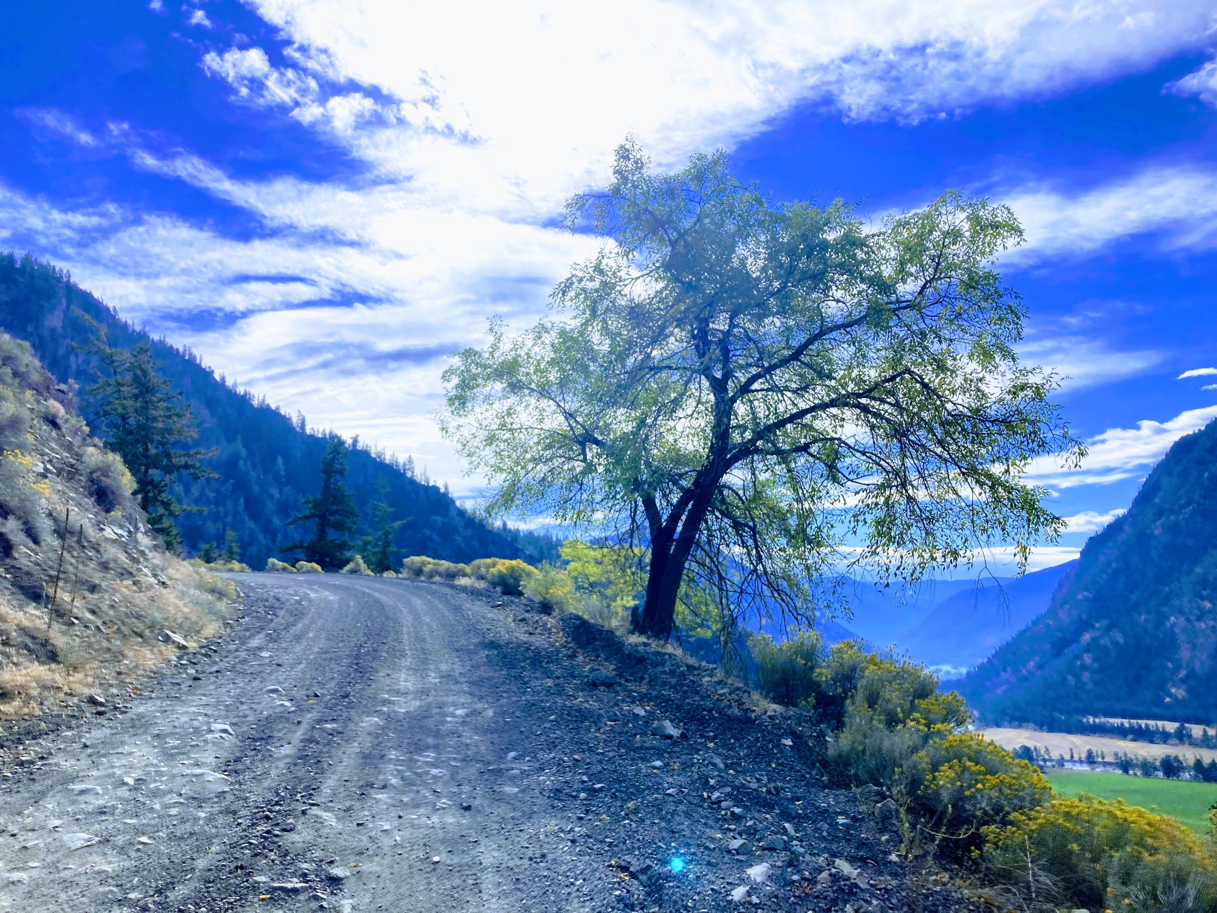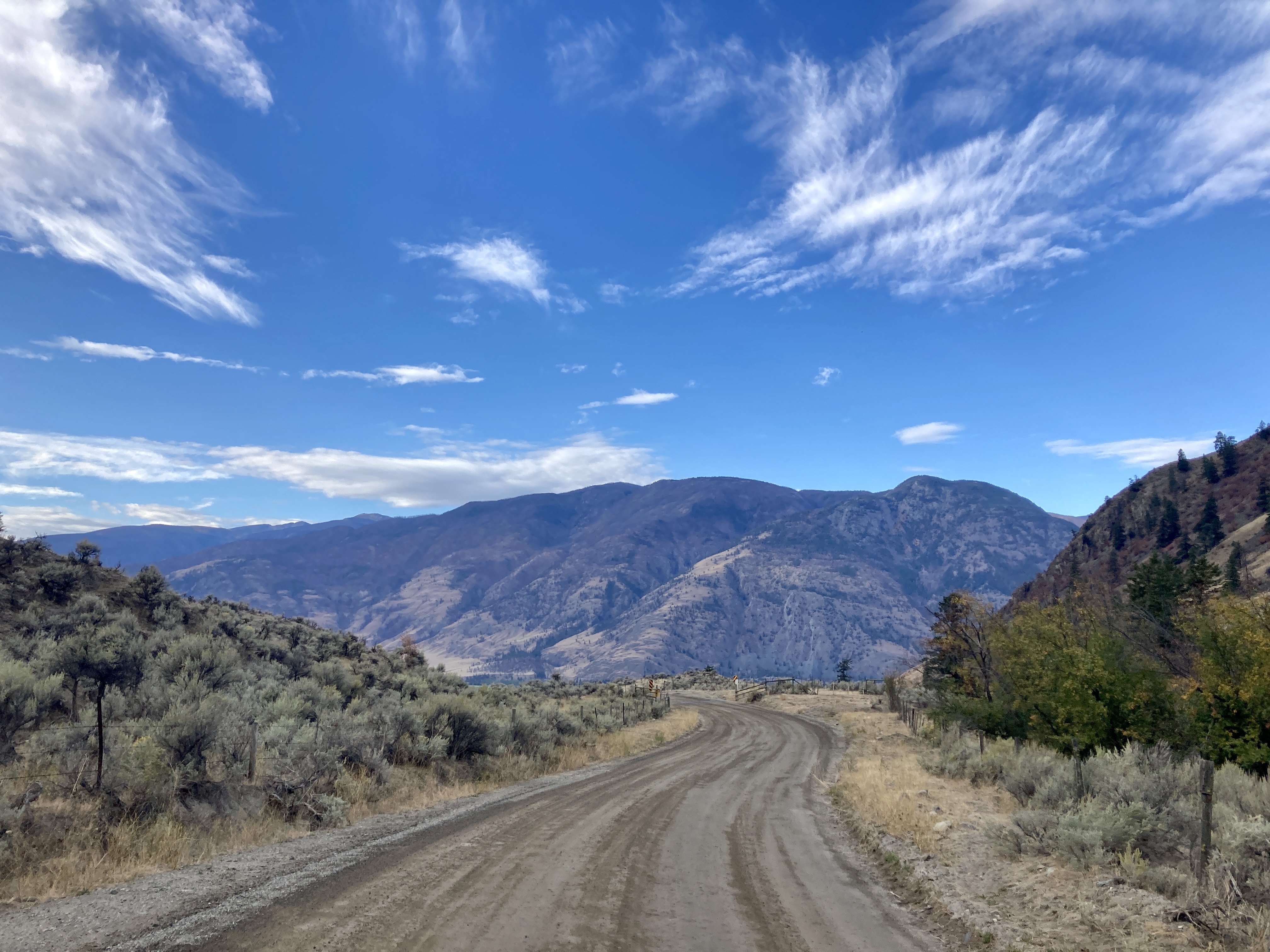 This camel with two humps starts and finishes in Oliver, about a hundred kilometres south of Kelowna. The first 736-metre climb up Fairview Road starts the moment you clip in. I glanced once over my shoulder at the pale patchwork of green vineyards receding into the distance before the pavement turned to gravel, the open properties replaced by towering conifers intermingling with waves of fiery-hued leaves. Fairview Road charts a course from Oliver in the Okanagan Valley to the east, and Cawston in the Similkameen Valley to the west. A bird eye view would reveal a winding, switchbacked gravel road threading between duly impressive but non-headlining peaks—apart from Kobau Mountain to the south. After I descended into Cawston I followed a spur trail of the KVR for a bit before hopping on the highway shoulder until the turnoff for Nickel Plate Road, just before Hedley. This 1,421-metre gravel ascent—known by its Strava segment as “Apex, the hard way!” averages 6.4% (7% climb only), and according to PJAAM Cycling, ranks as Canada’s #2 hardest climb. Those intrepid (or stupid) enough to tackle it are rewarded with incredible views of the Similkameen Valley and surrounding mountains. If you’re keen for a break, rumour has it that you can sneak into some of the abandoned mines, or alternatively, simply enjoy an overlook of the squiggly, zigzagging road you just sweat your face off climbing up.