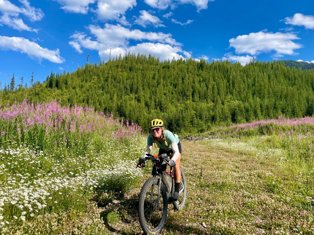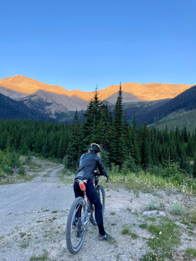 My highlight was descending into the Kootenay River area after the aforementioned hike-a-bike up Tegart Pass (plus a little more hiking on the descent, since I’m an insufficiently-skilled bike handler to navigate narrow trail and technical terrain). When the route finally became rideable again, it swept down a fast gravel forest service road through meadows of brilliant fuchsia fireweed with sweeping panoramic views of the surrounding mountains. I wish I could name some of them, but it was all too brief. All I could do was breathe in and be fully present.